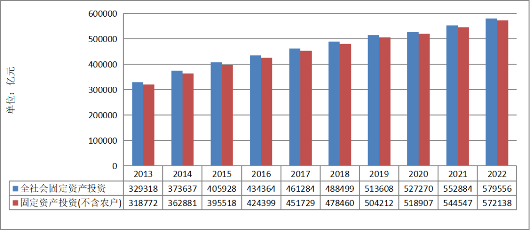 图1-4 2013—2022年全社会固定资产投资