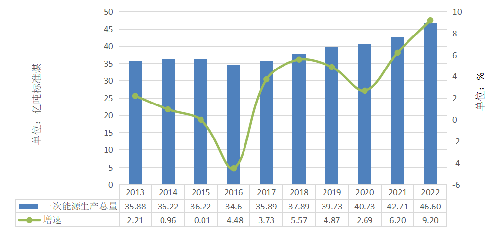 一次能源生产总量46.6亿吨标准煤,同比增长9.2%。