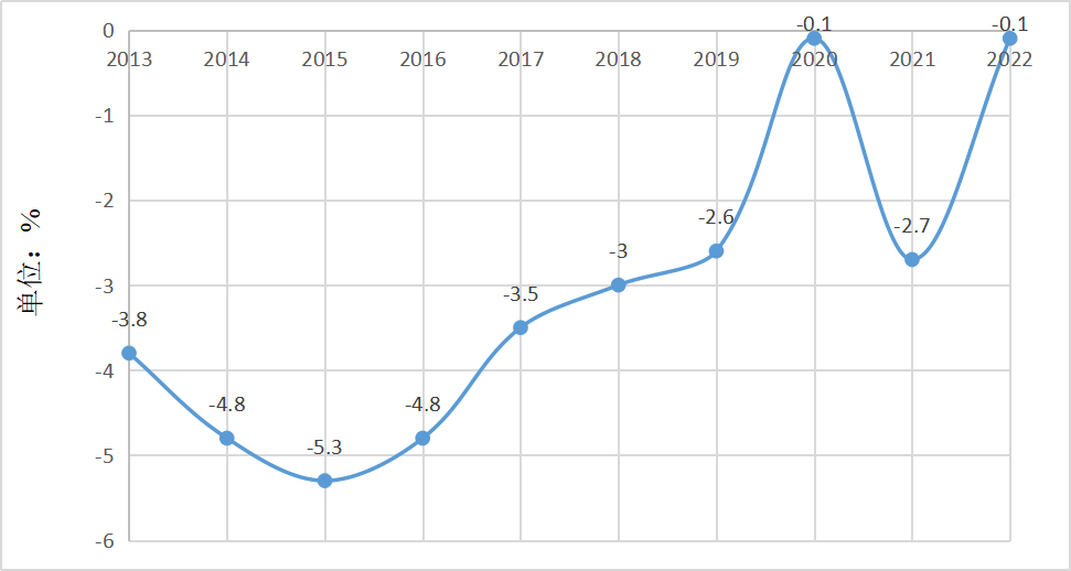 图1-13 2013—2022年万元国内生产总值能耗降低率