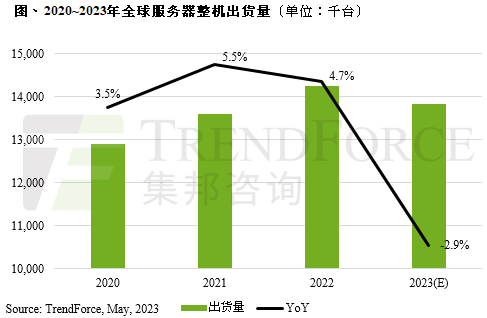 近日消息,据 TrendForce 集邦微信号发布的研究报告,由于四大 CSP(云端服务供应商) 陆续下调采购量,Dell 及 HPE 等 OEM 也在 2~4 月期间下调全年出货量预估,同比分别减少 15% 及 12%,加上国际形势及经济因素影响,服务器需求展望不佳。报告预估,今年全球服务器整机出货量将因此再下修至 1,383.5 万台,同比减少 2.85%。