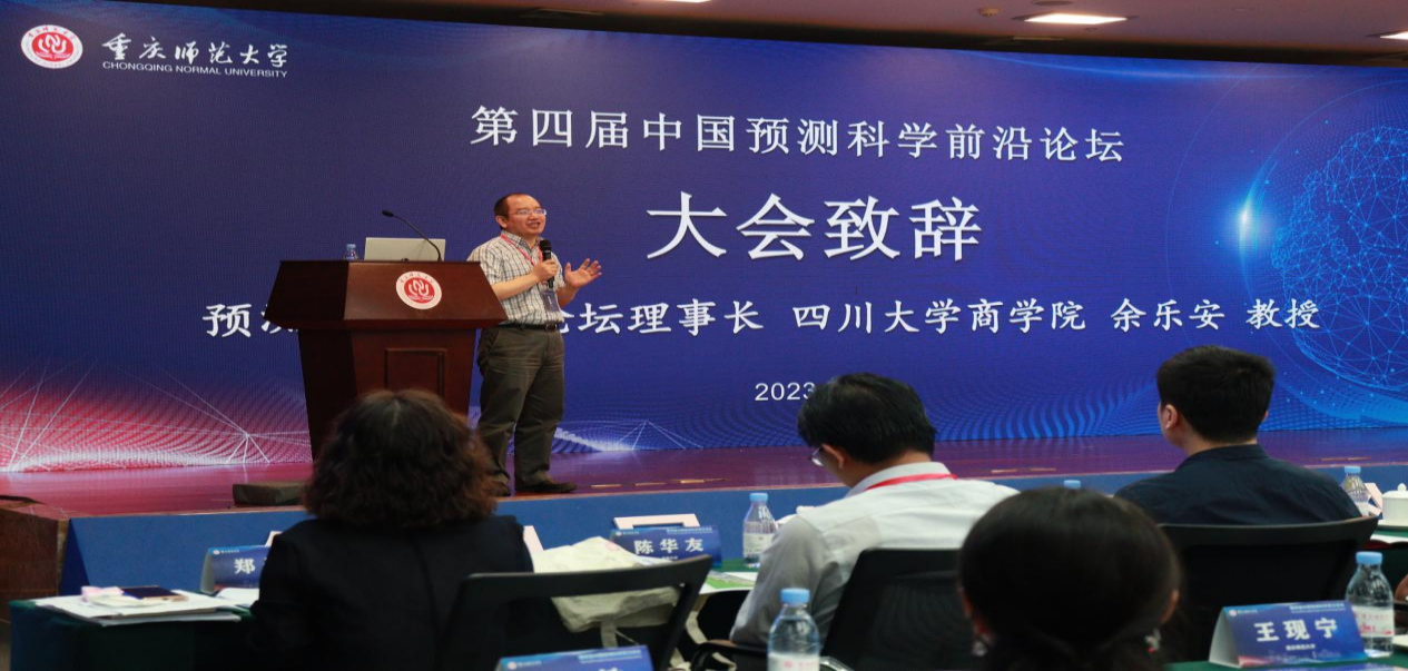 2023年5月11日至13日,第四届中国预测科学前沿论坛在重庆师范大学成功举办。本届论坛由重庆师范大学、中国预测科学前沿论坛理事会、中国管理现代化研究会管理与决策科学专业委员会、中国优选法统筹法与经济数学研究会船海经济管理分会联合主办,重庆师范大学经济与管理学院承办。重庆师范大学党委常委、副校长董景荣教授、中国预测科学前沿论坛理事长余乐安教授出席论坛并为大会致辞,重庆师范大学经济与管理学院执行院长郑景丽教授主持大会。