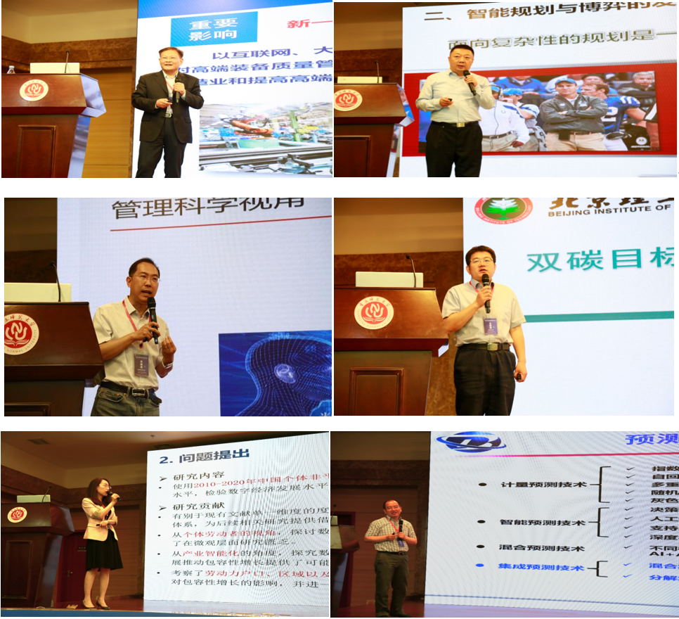 杰出学者论坛上,合肥工业大学刘心报教授、国防科技大学刘忠教授、北京航空航天大学吴俊杰教授、北京理工大学王兆华教授、哈尔滨工业大学张紫琼教授以及四川大学余乐安教授分别就《新一代信息技术环境下的全生命周期质量管理理论与质量诊断预测方法》《智能决策的思考与探索》《管理科学视角下的数据智能研究》《“双碳”目标下我国典型行业电能替代实现路径研究》《数字经济的收入效应:兼论不同技能劳动力间的收入差距与包容性增长》《集成预测:基本原理、主流技术与最新进展》六个专题作大会主题报告。
